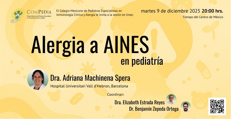 Les invitamos a asistir a nuestro próximo webinar “Alergia a AINES en pediatría”, impartido por la Dra. Adriana Machinena Spera, Hospital Vall d’Hebron, España.